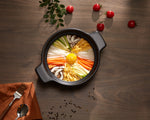-Distributes heat evenly during cooking and retains warmth while serving.