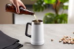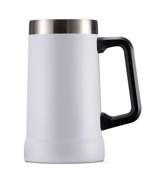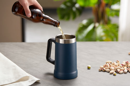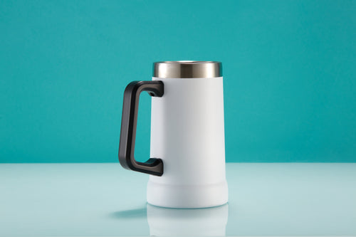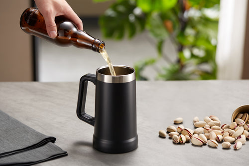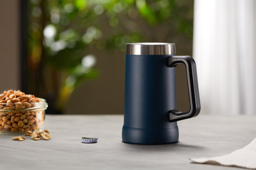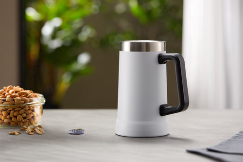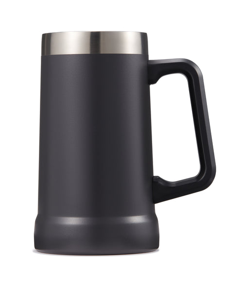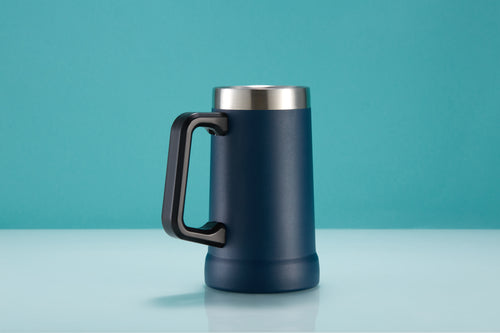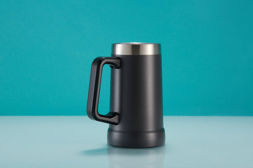 Good beer needs a good mug. Strong, sturdy, solid, and most importantly- very large. Crafted with a big easy-grip handle, this Beer Stein swings from the couch to the car or park picnic. Vacuum insulated stainless steel makes this mug shatterproof, lightweight, and ready to hold your drink’s temperature for hours.