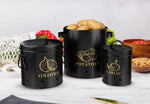 Potato, Onion & Garlic Kitchen Storage Canisters, Set of 3, Farmhouse Collection Black
