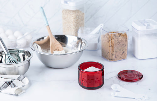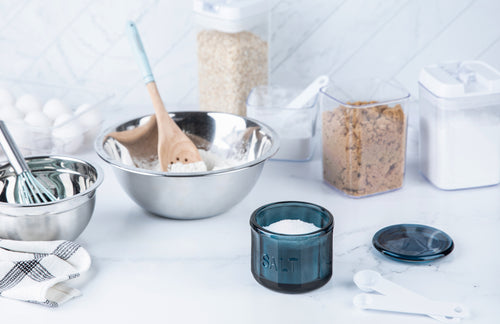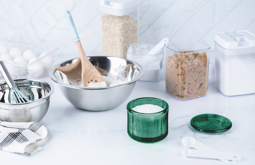 This charming salt cellar makes seasoning a breeze. Crafted with durable glass, embossed, and paired with a matching lid that keeps contents fresh, dry, and always handy. Herbs and spices are never more than a pinch away!