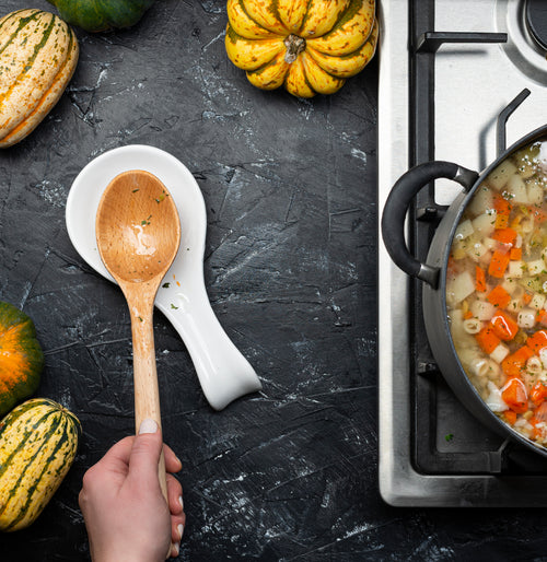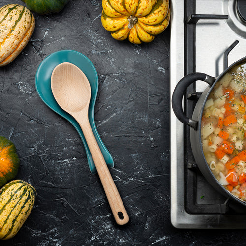 Mix, toss and taste away; these bright and durable spoon rests will keep your kitchen neat and tidy.