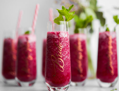Pop open a bubbly bottle and get sipping! These stemless bridal flutes are shaped with a rounded bowl and narrow rim. The slender silhouette is chip-resistant, stable, and the perfect classy touch to any cocktail party or dinner table.