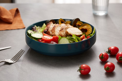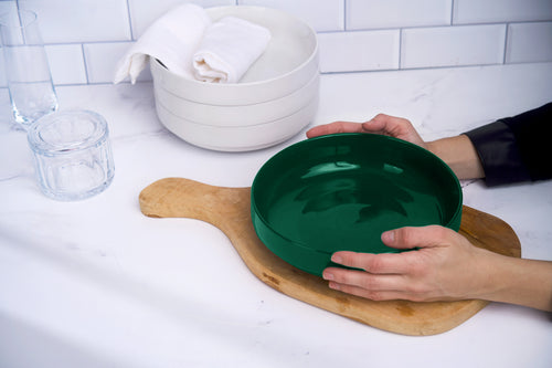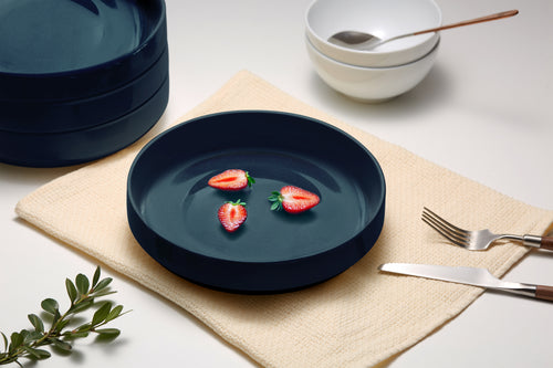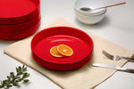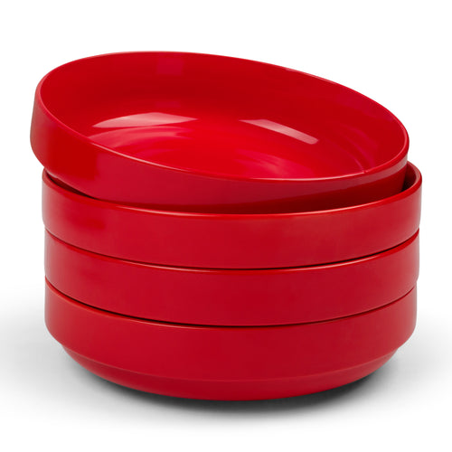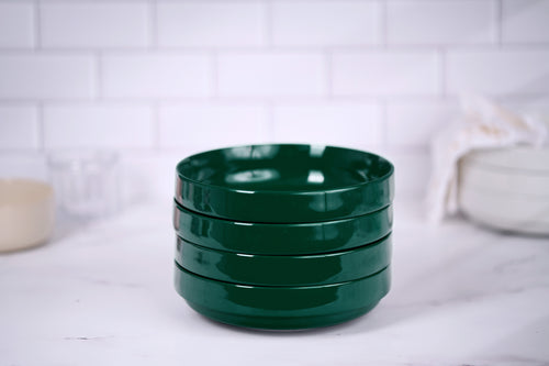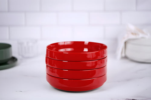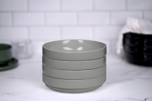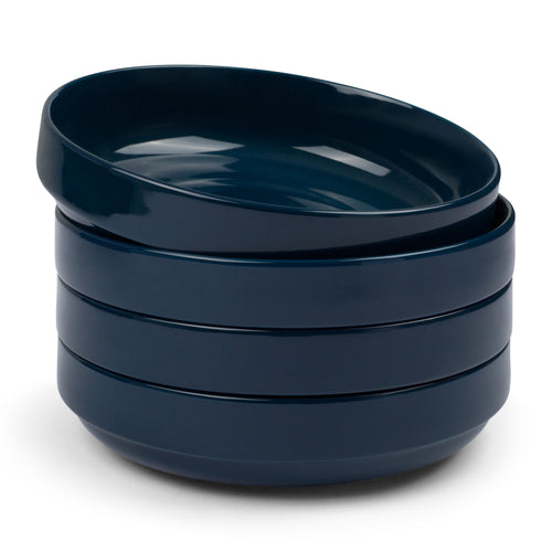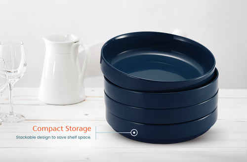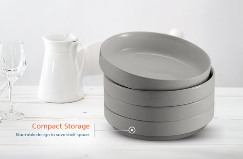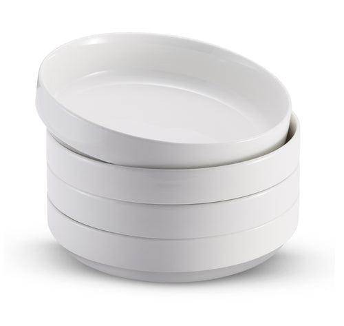 It's a bowl, it's a plate. it's both?! Wide and shallow, these versatile dishes are perfect for serving pasta, salads, desserts, and stews. Made with durable white ceramic with a glossy finish and extra large 47 ounce capacity. These bowls stack snugly for space-saving storage. Pop it in the dishwasher for easy cleanup.