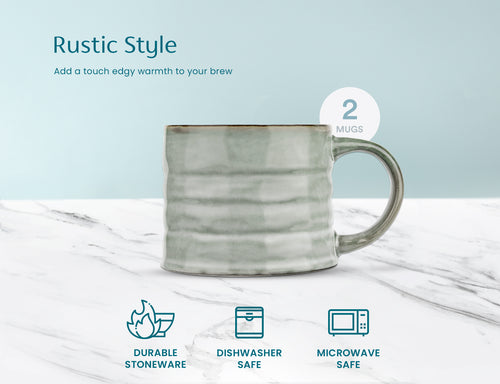 Add a touch of edgy warmth to your morning brew. Each coffee mug in this set is made from durable stoneware with a glossy finish.
