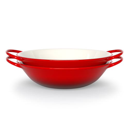 Wok, Stir Fry and Beyond! These versatile dishes are perfect for serving more than just traditional Asian cuisine. Shaped with a wide rim, two easy carry handles, and a shallow interior, their unique shape is great for extra large portions of saucy spaghetti, big leafy salads, steamy stews and everything in between.
