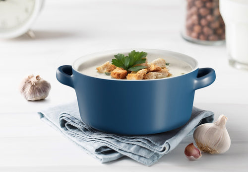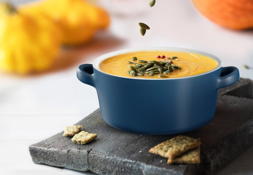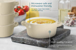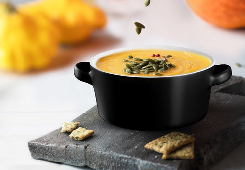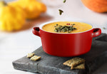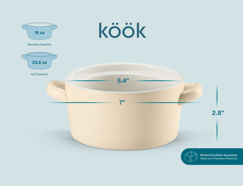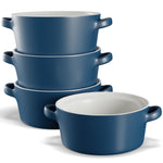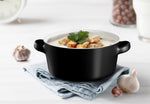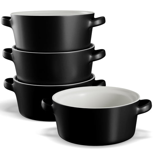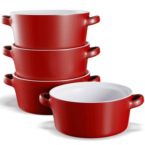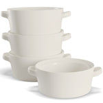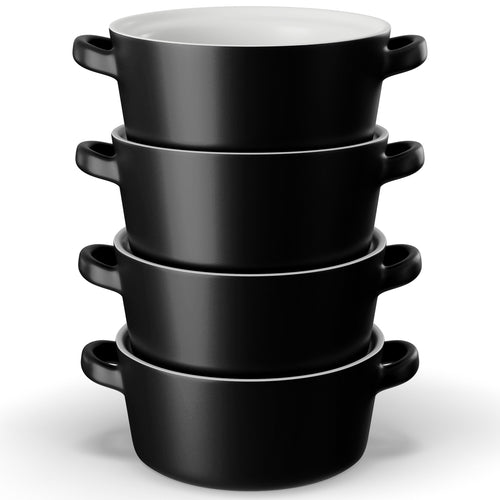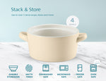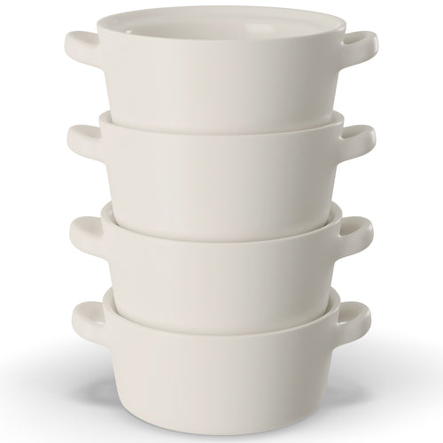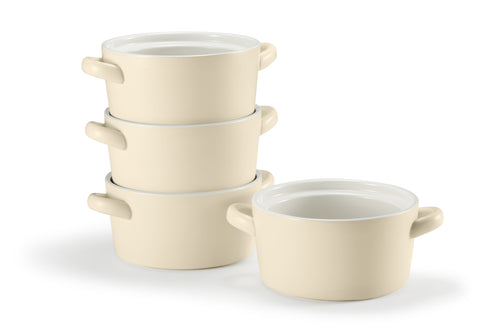 Soups, Stews & More! These ceramic crocks are perfect for cooking up individual servings of pot pies, chili, stews, casseroles, or our personal favorite; gooey, cheesy French Onion. Each crock is designed with two large, comfort-grip handles for easy and safe carrying from oven to table, and stack snugly for space saving storage.
