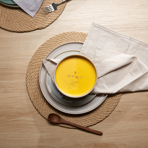 Less is more. Blending minimalist with a hint of rustic, this dinnerware set brings a warm air to the modern table. It’s crafted from earthy and sturdy stoneware, comes in two rich, natural colors, and is finished with a raised burnt-copper rim. Perfect for serving salads, mains and soups!