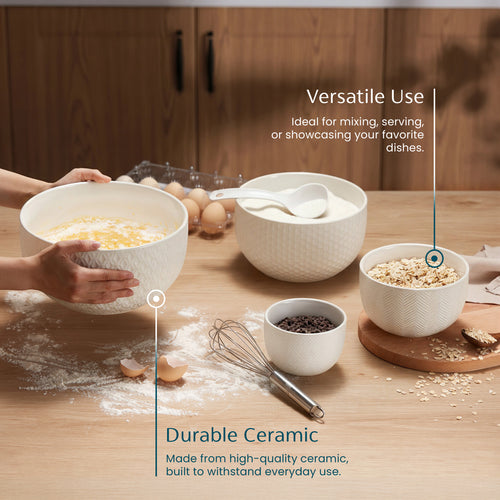 Ceramic Nesting Bowls, 20/44/98/145 oz, Cream/Copper, Set of 4