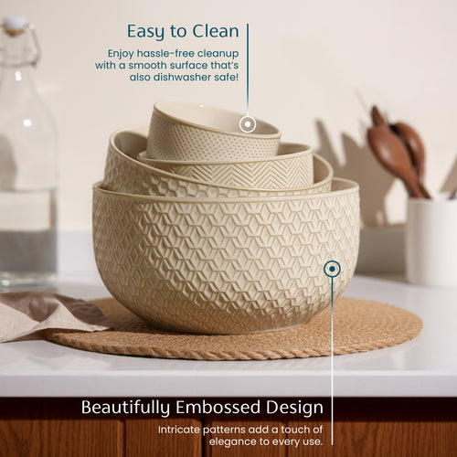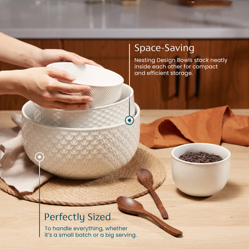 Ceramic Nesting Bowls, 20/44/98/145 oz, Cream/Copper, Set of 4