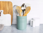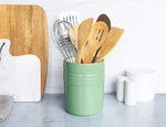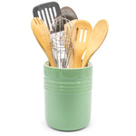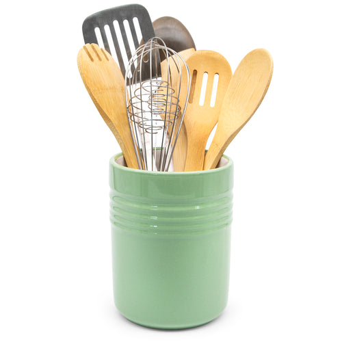Your utensils are sick and tired of drowning in jammed drawers. Give them a little wiggle room to breathe. In this chic, free-standing utensil crock, all of your ladles, spoons, and whisks are just a grab away.