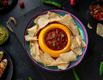 Colorful. Bright. Spicy. Part of our Tinga collection, this Chip and Dip Platter is vibrant, hand-painted and ready to party. We love it for serving a large crowd. It’s got plenty of room for tortilla chips and guac, or use it to serve fruits and fondue, veggies and ranch dressing, and any other fiesta munchies you can pile on.