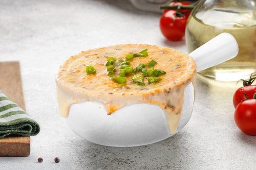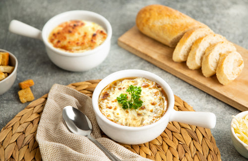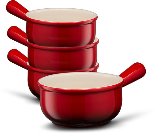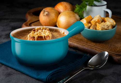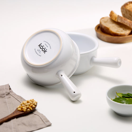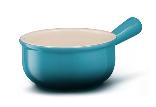 These durable ceramic crocks are designed with a large stay-cool handle for breezy oven-to-table transfer. Perfect for everything from individual pot-pies and casseroles to our personal favorite; gooey, cheesy French Onion.
