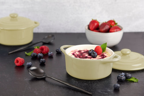 Perfectly sized for personal servings of stews, casseroles, pastas, pies and more! Made with durable ceramic and shaped for breezy oven to table transfer.