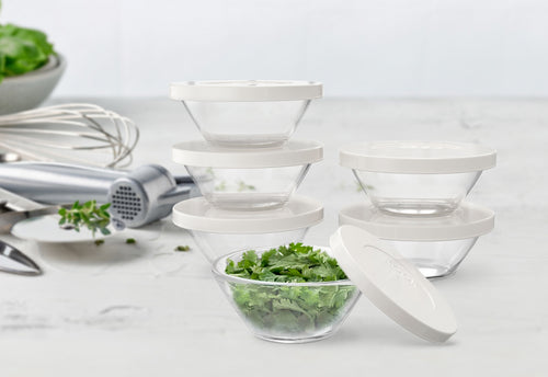 With these handy bowls, your herbs, spices and juices are never more than a pinch away! With a sturdy and sleek glass design, each bowl in this set is paired with a leak-proof lid that locks out excess air so contents stay fresh and easily transportable. These dishes are perfect for enjoying fruits, nuts and munchies on the go.